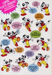 - Inhalt: Lupo arbeitet mit Fix und Foxi und Lupinchen auf dem Flohmarkt, wo er selbst einen fliegenden Orientteppich erwirbt. Zunächst erschrickt er damit Oma Eusebia, dann lädt er Fix und Foxi zu einem Rundflug ein. Da die beiden aber die Landeformel nicht kennen, plündert Lupo inzwischen in aller Ruhe ihren Kühlschrank. Doch Onkel Fax bringt die Formel in Erfahrung.